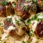 This Garlic Butter Meatballs with Parmesan Linguine Delight is a comforting Italian-American dinner featuring juicy, seared meatballs bathed in a rich garlic butter sauce, served atop creamy Parmesan-coated linguine. The combination of garlic, fresh herbs, and tangy lemon juice elevates the hearty flavors for a memorable meal that’s perfect for family dinners or special occasions.