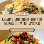 This Spaghetti & Spinach with Sun-Dried Tomato Cream Sauce is a simple yet indulgent pasta dish featuring al dente spaghetti tossed in a rich and creamy sun-dried tomato sauce with fresh spinach and garlic, finished with Parmesan cheese and optional red pepper flakes for a subtle kick. Perfect for a comforting weeknight dinner or a special meal shared with loved ones.