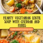 This hearty vegetarian lentil soup is a comforting and nutritious meal, packed with vegetables, tender lentils, and a touch of cheddar and sour cream for creaminess. Perfect for a cozy lunch or dinner, it combines simple ingredients with fragrant herbs to create a rich, flavorful soup that’s easy to prepare in about 40 minutes.