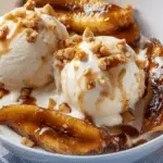 Bananas Foster is a classic dessert featuring ripe bananas and crunchy walnuts cooked in a rich, buttery rum sauce infused with brown sugar, cinnamon, and vanilla, served warm over creamy vanilla ice cream. This indulgent treat is perfect for special occasions such as Father’s Day and offers a delightful combination of warm, caramelized flavors with the cool sweetness of ice cream.