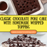 This decadent Chocolate Poke Cake features a moist devil’s food chocolate cake pierced with holes and soaked in a rich, melted milk chocolate and sweetened condensed milk mixture. Topped with a luscious homemade chocolate whipped cream, mini chocolate chips, and chocolate syrup drizzle, this dessert is a perfect indulgence for chocolate lovers, ideal for special occasions or an impressive treat.