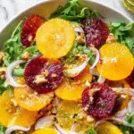 This refreshing Citrus Salad combines a vibrant mix of blood oranges, navel oranges, and grapefruit with peppery arugula, thinly sliced red onions, and crunchy walnuts. The salad is dressed with a tangy and slightly sweet lemon-Dijon vinaigrette, making it a perfect light and healthy dish for any season.