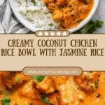 This Creamy Coconut Chicken Rice Bowl is a flavorful, easy-to-make dish featuring tender chicken simmered in a rich coconut milk sauce infused with garlic, ginger, and smoked paprika, served over fragrant jasmine rice. Perfect for a quick weeknight dinner that comforts with its creamy texture and bold, aromatic spices.