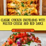 This Chicken Enchiladas recipe features tender shredded chicken seasoned with cumin and chili powder, wrapped in warm flour tortillas, smothered in rich red enchilada sauce, and baked to perfection with melted Monterey Jack cheese. It’s a flavorful and comforting Mexican-inspired dish perfect for a family dinner.