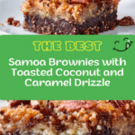 Delight in these Easy Samoa Brownies, a delicious twist on classic brownies inspired by the popular Samoa cookie flavors. Featuring a rich, fudgy brownie base topped with toasted coconut mixed with caramel sauce and drizzled with melted semi-sweet chocolate, these brownies offer a perfect combination of chewy, gooey, and crunchy textures. They’re quick to prepare using a boxed brownie mix, with simple steps to create a decadent dessert that’s sure to satisfy your sweet tooth.