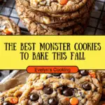 These festive Halloween monster cookies are a spooky delight packed with chewy oats, crushed pretzels, gooey chocolate, and colorful candy-coated M&M’s—topped off with candy eyes for a fun and eerie twist. Every bite has the perfect balance of sweet and salty, chewy and crunchy, making these cookies an irresistible treat for Halloween parties or cozy autumn baking days.