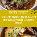 This rich and comforting French Onion Beef Short Rib Soup combines tender, slow-simmered beef short ribs with deeply caramelized onions, infused with aromatic herbs and balsamic vinegar. Topped with toasted French bread and melted Swiss or Gruyère cheese, it’s a perfect hearty meal that balances robust flavors with a golden, cheesy crust.