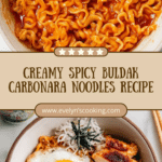 A creamy and spicy fusion twist on traditional carbonara, Homemade Buldak Carbonara combines rich parmesan and egg yolks with fiery gochujang and savory seasonings to create a flavorful noodle dish inspired by Korean flavors. This quick and easy recipe results in a smooth, creamy sauce that perfectly coats your favorite noodles for a satisfyingly indulgent meal in just minutes.