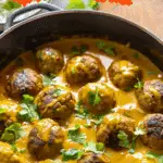 Juicy ground chicken meatballs seasoned with bold jerk spices and simmered in a velvety coconut curry sauce — a Caribbean-inspired comfort dish perfect for weeknights or entertaining.