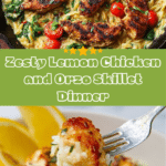 This zesty lemon chicken and orzo recipe is a one-pan delight perfect for quick and comforting meals. Tender boneless chicken thighs seared to golden perfection combine with sautéed vegetables, orzo pasta, fresh spinach, and a bright lemon-caper sauce all cooked in a single skillet. Ready in just 30 minutes, this dish offers a delicious balance of savory, tangy, and fresh herb flavors, making it an ideal weeknight dinner or casual gathering option.