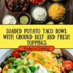 Savor the crispy roasted potatoes topped with seasoned ground meat, black beans, corn, and fresh veggies in this Loaded Potato Taco Bowl. Combining bold spices, hearty ingredients, and fresh toppings, this dish delivers a perfect blend of textures and flavors, ideal for a quick, comforting meal or meal prep.
