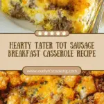 A hearty and delicious Tater Tot Sausage Breakfast Casserole combining crispy tater tots, savory hot breakfast sausage, and melted cheeses, all baked together with a fluffy egg and milk mixture. Perfect for a family brunch or a make-ahead breakfast.