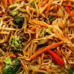 A quick and flavorful Veggie Lo Mein recipe loaded with fresh vegetables and a savory homemade sauce, ready in under 30 minutes. Perfect for a satisfying weeknight meal that combines tender noodles with caramelized carrots, broccoli, bell peppers, and onions.