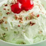 For presentation, sprinkling extra chopped pecans and placing a few maraschino cherries on top really elevates the look and feels inviting on any dining table. I also enjoy adding a few fresh mint leaves as a garnish—it adds a fresh fragrance and a nice pop of green color that echoes the pistachio theme.